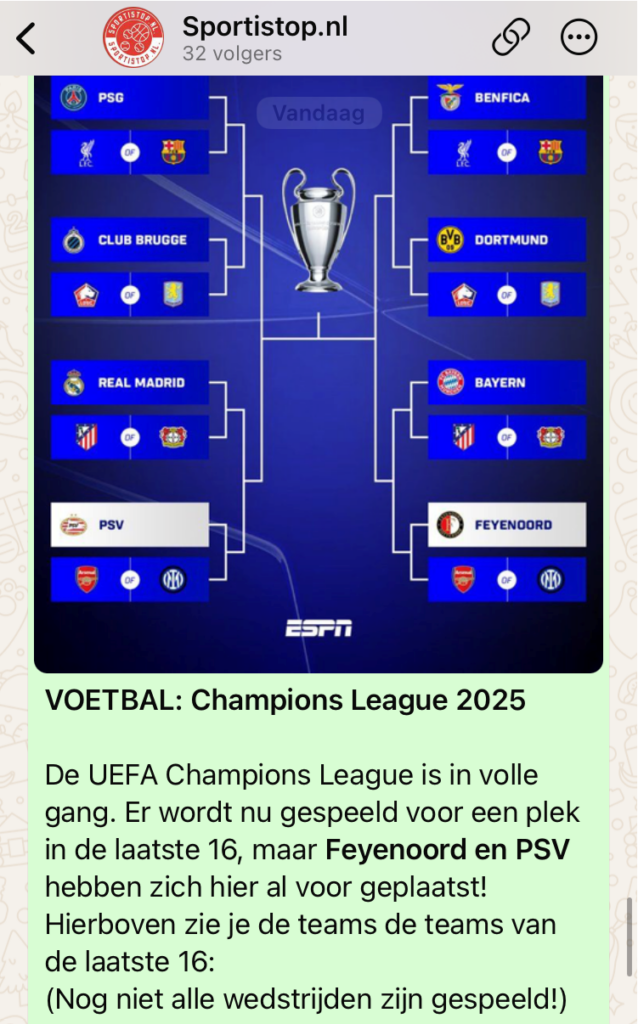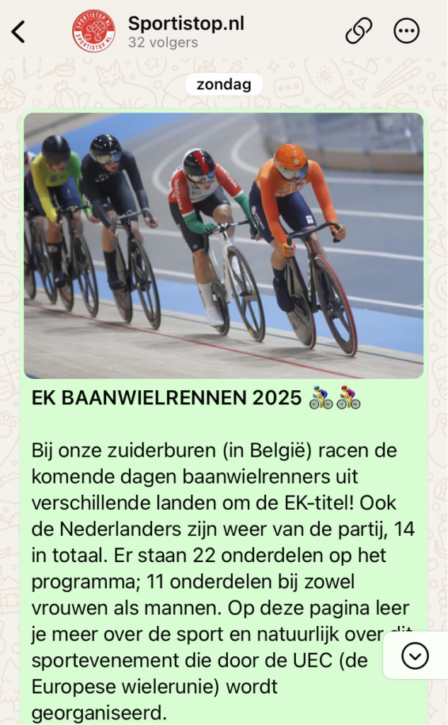 Wat is er te zien en te doen op het Whatsapp kanaal van Sportistop.nl?