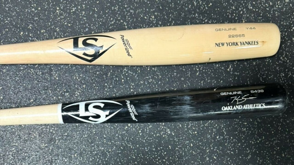 Een honkbalknuppel mag maximaal 6,63 centimeter breed zijn. Maar of het dikste gedeelte aan het eind zit, of in het midden, maakt niet uit. Daarom mag deze knuppel voorlopig gewoon gebruikt worden.