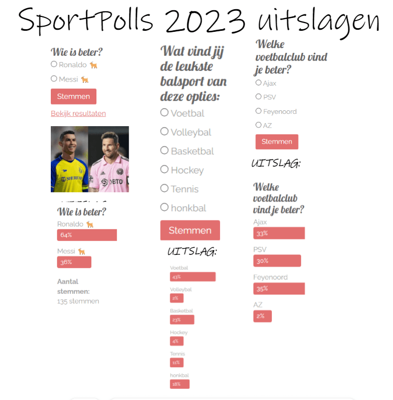 Op de homepagina kan je al vanaf de lancering van Sportistop.nl op sport polls stemmen. 3 van die polls staan er al lang op en hieronder staan de uitslagen: